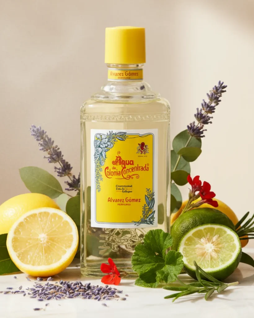 El Agua de Colonia Concentrada Álvarez Gómez contiene alérgenos presentes de forma natural en sus aceites esenciales —como limonene, linalool, geraniol, citral, eugenol y citronellol— que pueden causar reacciones en personas especialmente sensibles. Se recomienda aplicar la fragancia sobre la piel limpia, preferiblemente en muñecas, cuello o detrás de las orejas, evitando el contacto con ojos o mucosas.