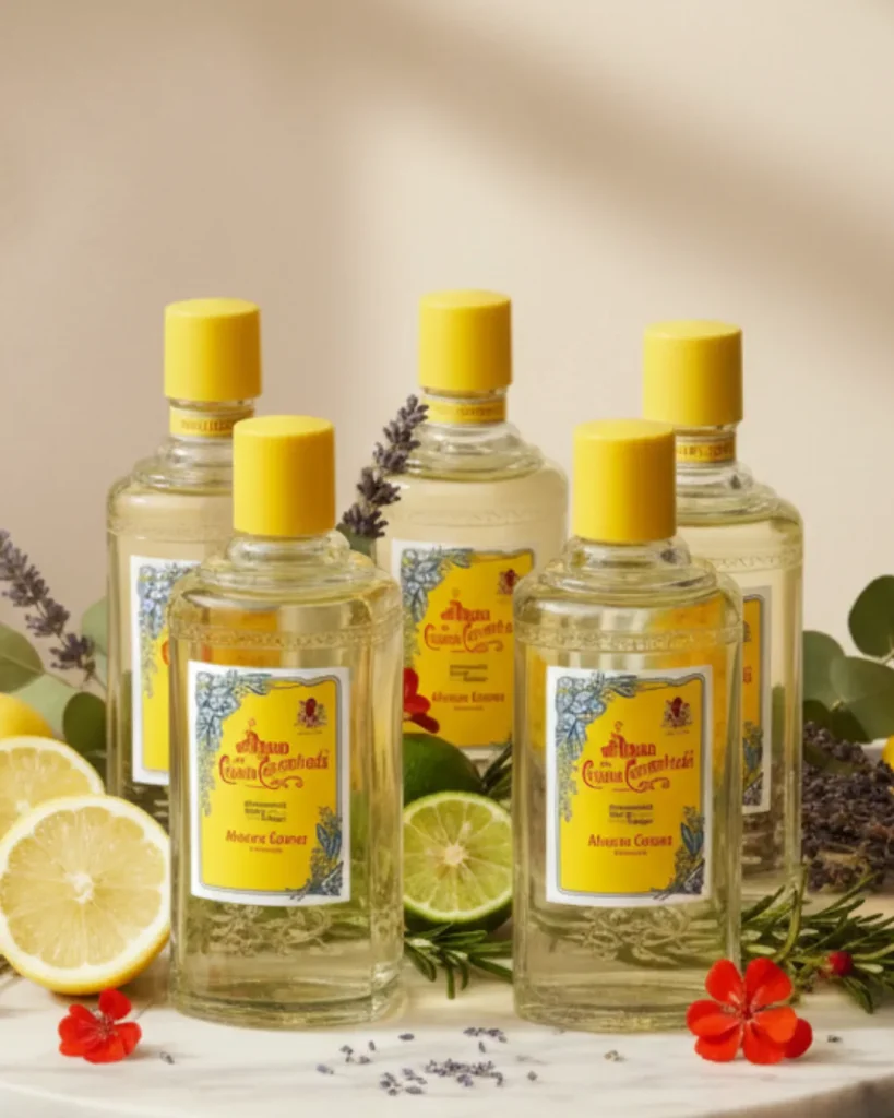 El Agua de Colonia Concentrada Álvarez Gómez mantiene fiel su fórmula original basada en ingredientes naturales mediterráneos como el limón español, la bergamota, el romero, la lavanda de la Provenza, el geranio y el eucalipto, que le confieren su carácter fresco, limpio y estimulante. Su composición técnica se apoya en alcohol denat, agua y parfum, junto con una serie de componentes aromáticos que aportan riqueza olfativa: limonene, linalool, geraniol, citral, eugenol y citronellol. Esta combinación, donde las notas se perciben de manera armónica desde el primer instante, da como resultado una fragancia cítrica-aromática vibrante y equilibrada, reconocida por su pureza sensorial y su capacidad de evocar la esencia del Mediterráneo en cada aplicación