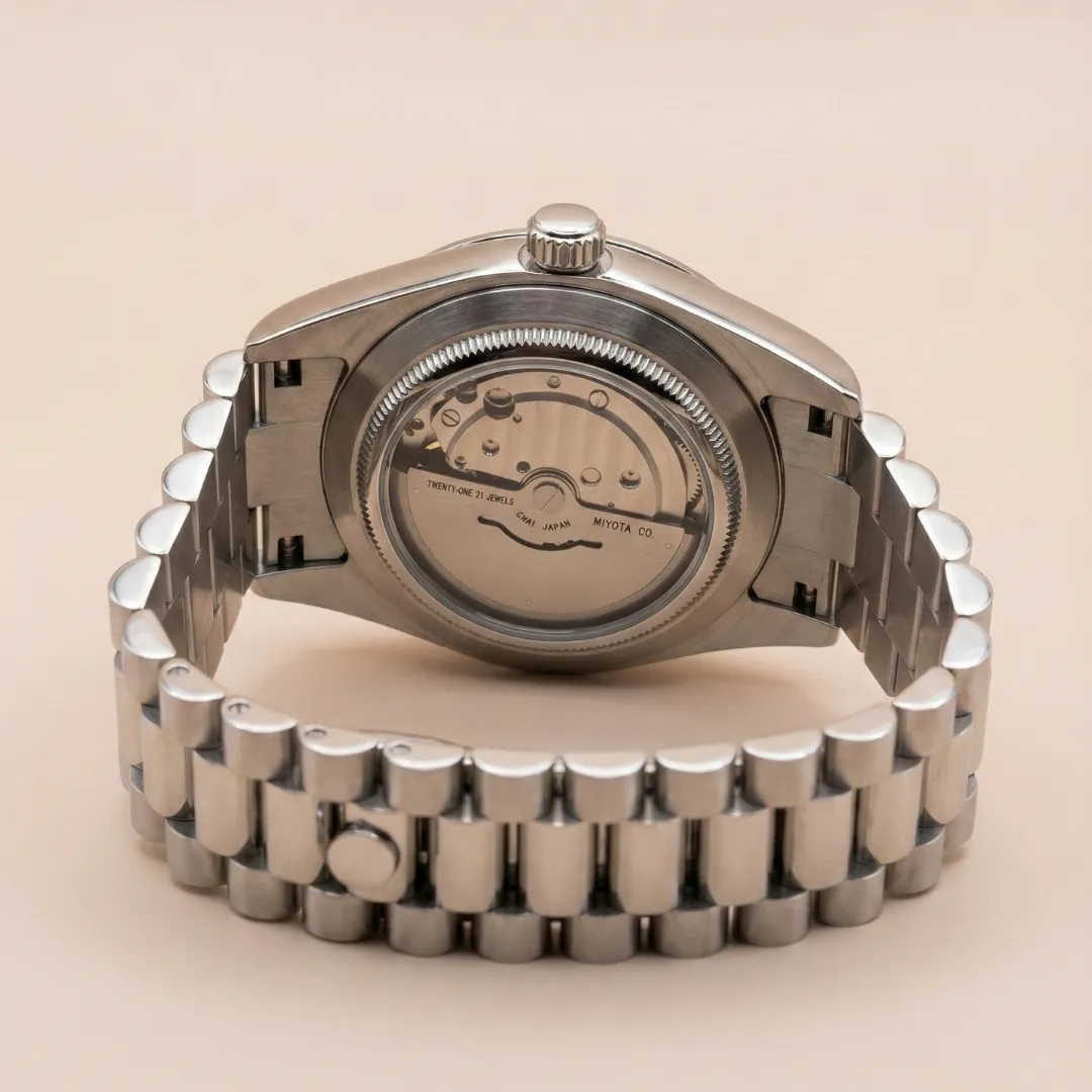 Fondo de la esfera (caja): Acero inoxidable con trasera transparente